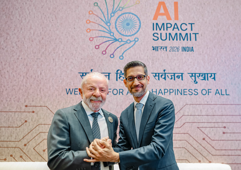 Nova Délhi / Índia - 19.02.2026 - Mundo - Presidente da República Lula da Silva, durante reunião com o CEO do Google, Sundar Pichai. Nova Délhi - Índia.